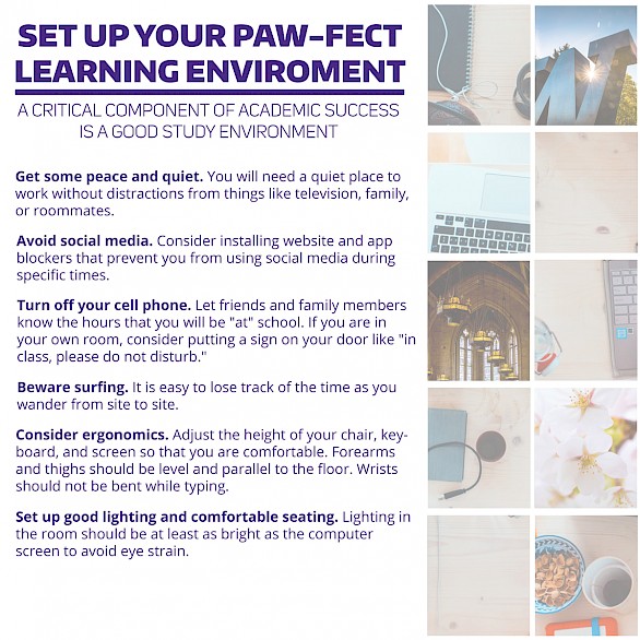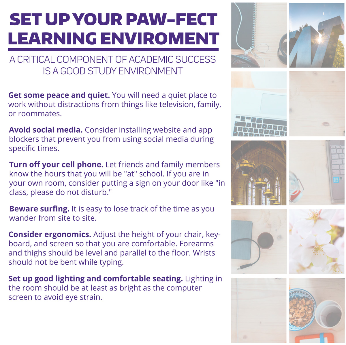 Your instructors may be using  Panopto, Zoom, Canvas, Office365 and Google G Suite for lecture capture, course management, online conferencing and collaboration. Get familiar with the platforms your instructors will be using. There are existing “how to” videos for each platform through UW Information Technology as well as online technical support.