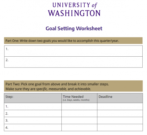You can use this worksheet to start identifying your goals for the academic quarter and year.
